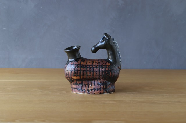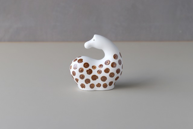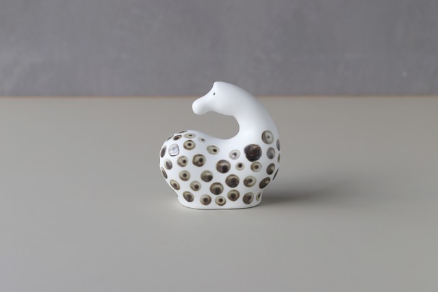 オーナメントウマの限定デザインです。 真っ白がPebbleの定番デザインですが、小さな鉄粉などで不良が出やすいデメリットがあります。 何割かで出てくるこの不良はそれだけのために、良品ではないと避けられています。 今回は私が「サルベージ計画」としてこの不良に手間を加え新たな作品として蘇らせました。 一点一点それぞれに模様をつけた特別なウマをどうぞお楽しみください。 ※釉薬のムラがあり個体差があります。不良ではございませんのでご了承ください。 素材の中に天然で含まれる微粒子ですが不良ではございません。 気になる場合はご連絡ください。 ----------------------------------------------------------- size:w107 d58 h109 mm